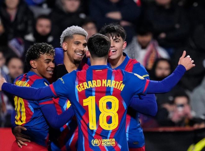 前2轮意外在联赛输给皇家社会后,巴萨迅速调整,欧冠西甲拿下4场胜利,不仅拿下前八晋级权,同时在西甲层面稳稳压住皇马排在榜首位置。本周中巴萨迎来冬歇期归来后的最后一次一周双赛,弗里克的球队来到国王杯8强赛场与阿尔瓦赛特交手;亚马尔与阿劳霍上下半场各进一球,巴萨2:1取胜晋级半决赛。